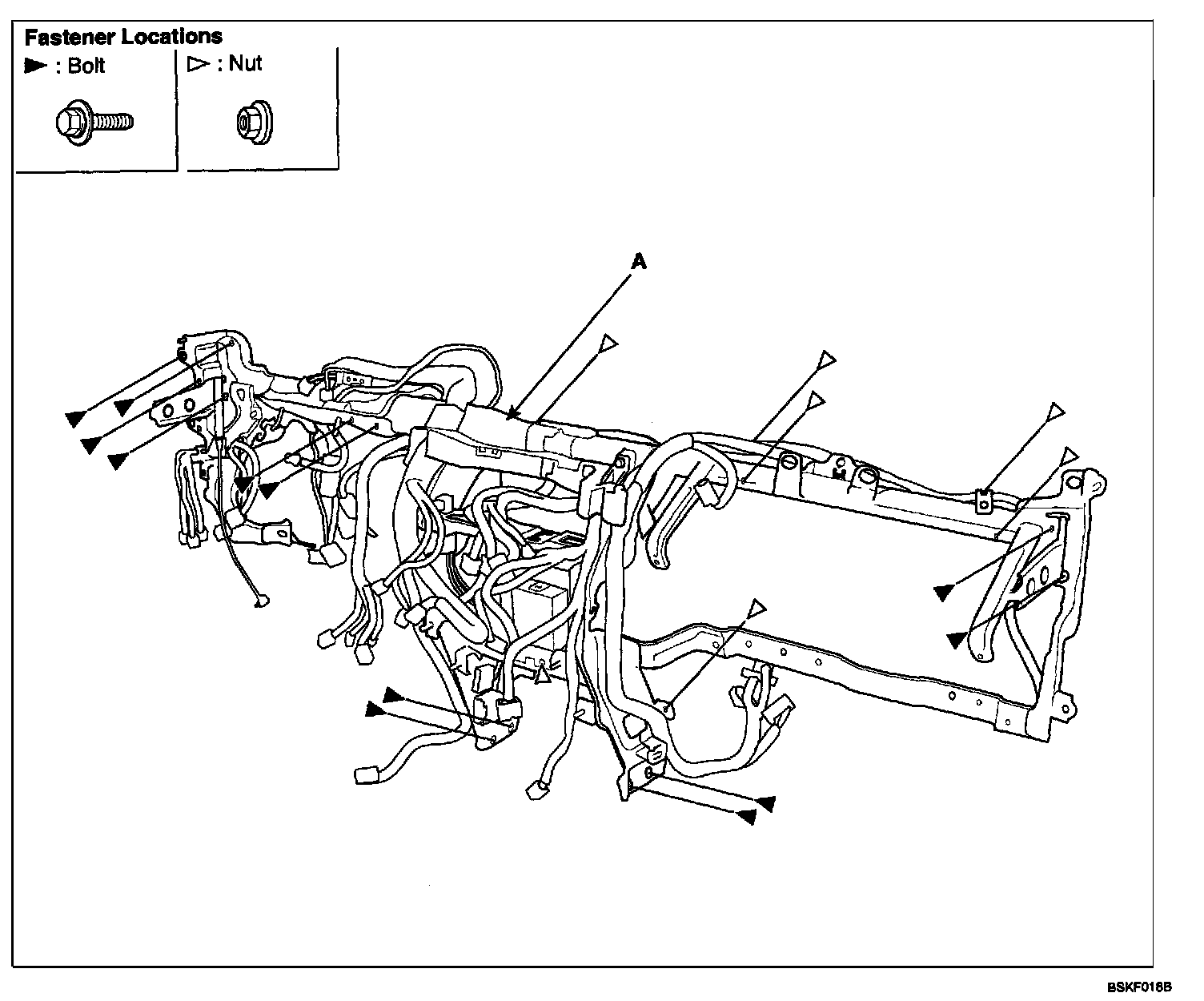 - Before tightening the bolts, make sure the crash pad wire harnesses are not pinched.