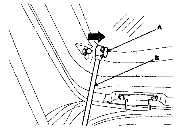 3. Disconnect the clip (A), remove the tailgate lifter (B).
