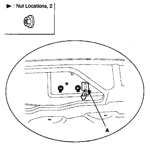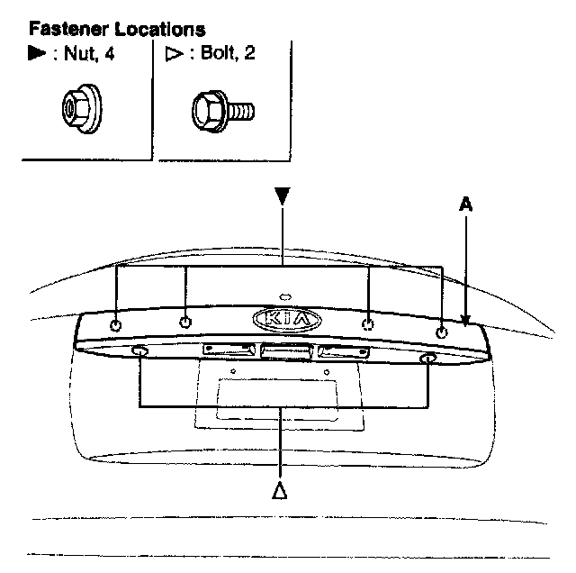 2. After loosening the mounting bolt and nuts, then remove the tailgate garnish (A).