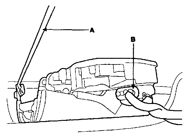 2. Disconnect the outside handle rod (A), connector (B).