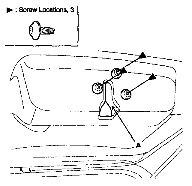 3. After loosening the mounting screws, then remove the latch assembly (A).