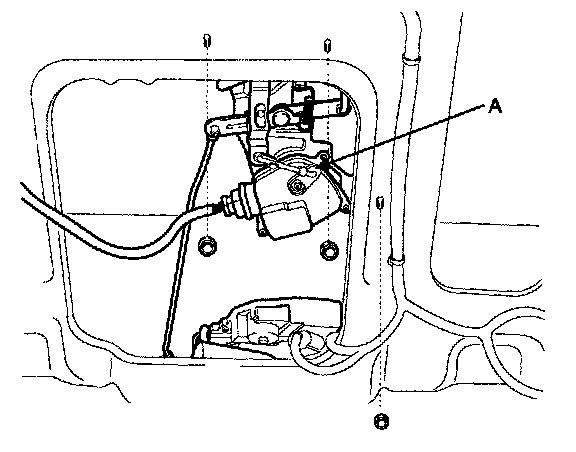 4. Remove the unlatch actuator assembly (A) after removing the connector and nuts (3EA).