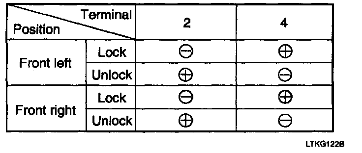 3. Check actuator operation by connecting power and ground according to the table. To prevent damage to the actuator, apply battery voltage only momentarily.