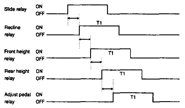 Motor starting is delayed for 100ms respectively in case of auto control to prevent rush current from overlap when motors are running, and it follows the following order. Slide > recline > front height > rear height > adjust pedal