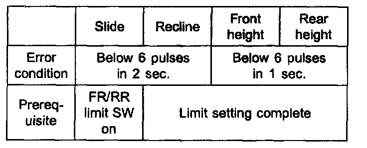 - Seat: if signal input is normal with over 6 pulses within a sec. from position sensor of a motor with an error caused by manual switch.