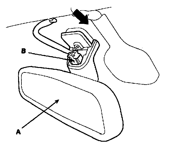 Push the ECM mirror base down to remove the ECM mirror assembly (B).