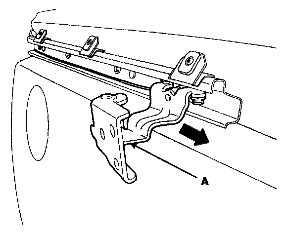 7. Remove the roller hinge bracket assembly (A).
