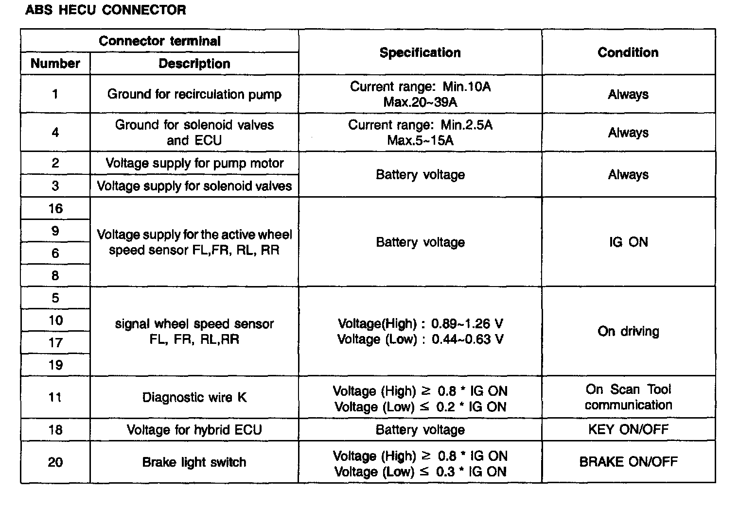 ECU CONNECTOR INPUT/OUTPUT (ABS):