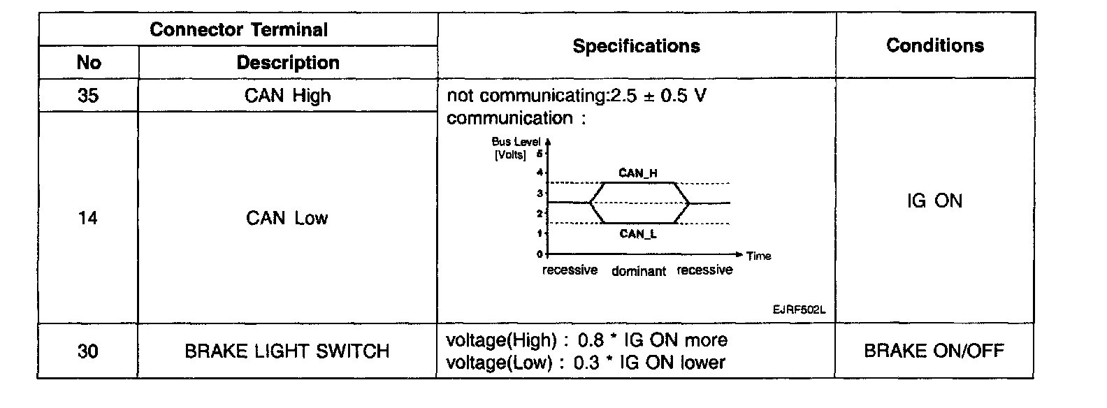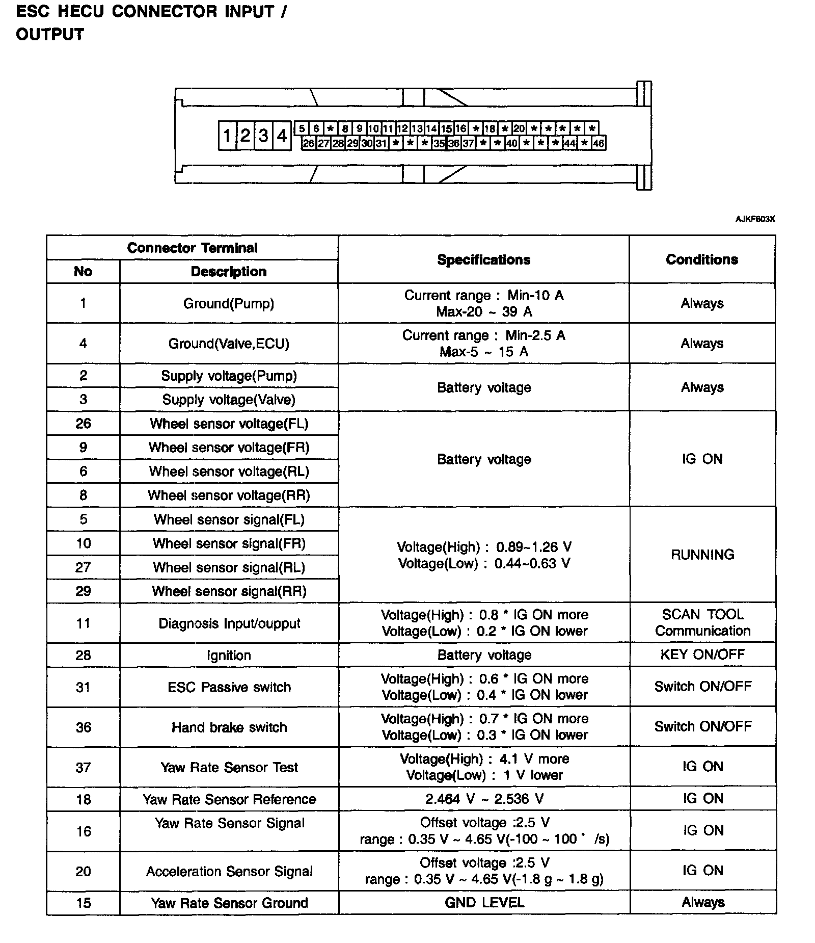 Control Module Pinout Values - ECS (Electronic Stability Program Control)