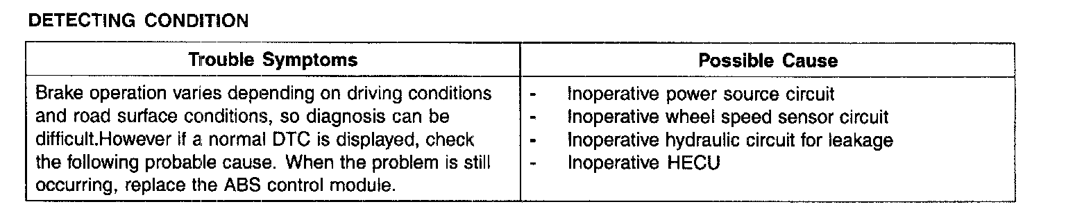 > Check the harness or connector between the fuse (10A) in the engine compartment junction block and the ABS control module. Repair if necessary.