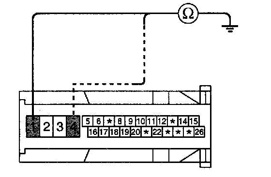 2. Check for continuity between terminals 1,4 of the ABS control module harness side connector and ground point.