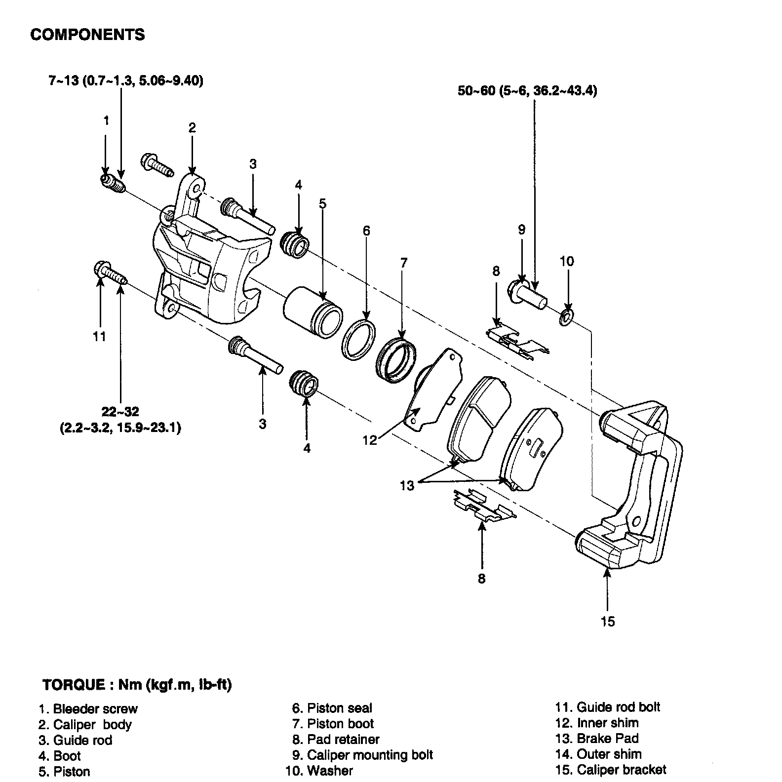 Tightening torque Nm (kgf.m, ft. lbs.): 22 - 32 (2.2 - 3.2, 15.9 - 23.1)