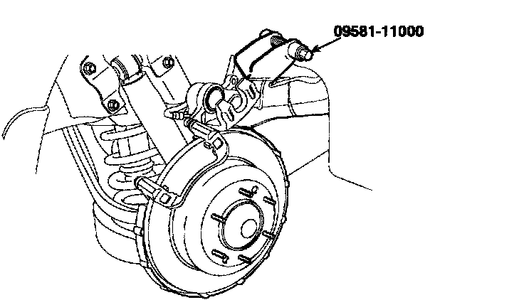 1. Raise the rear of the vehicle and make sure it is securely supported. Remove the rear wheel.