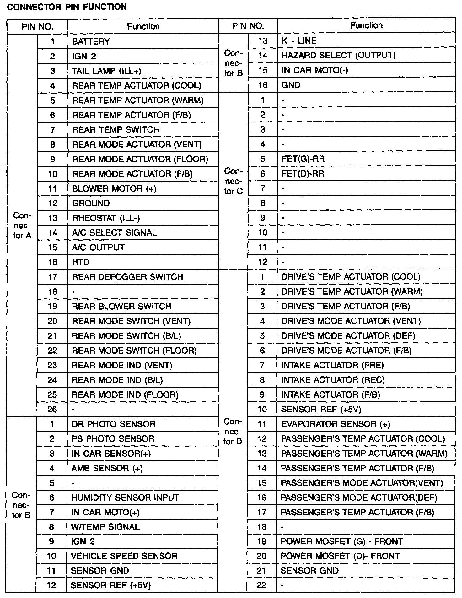 Connector Pin Function: