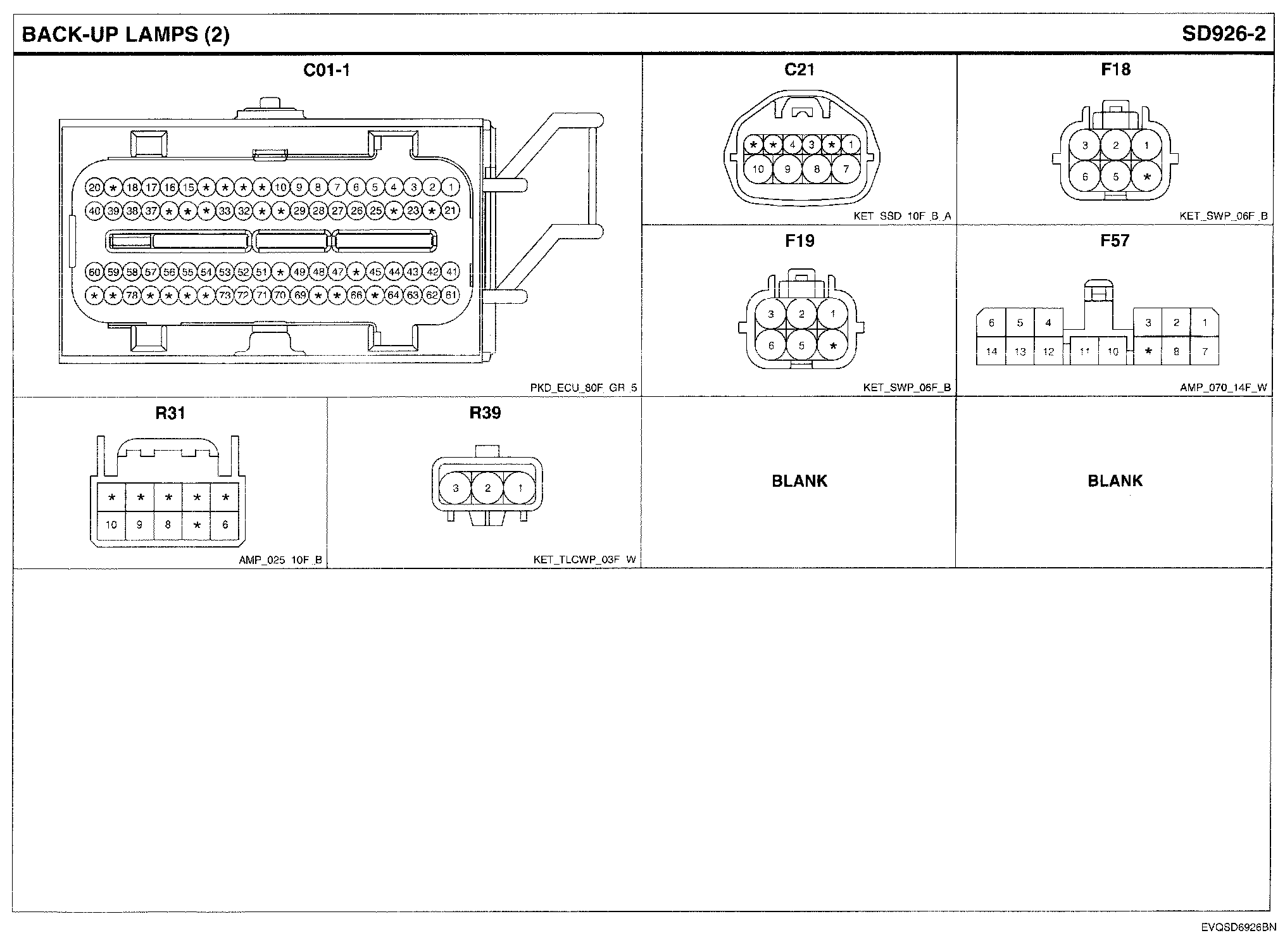 Back-Up Lamps Connector Pin Outs:
