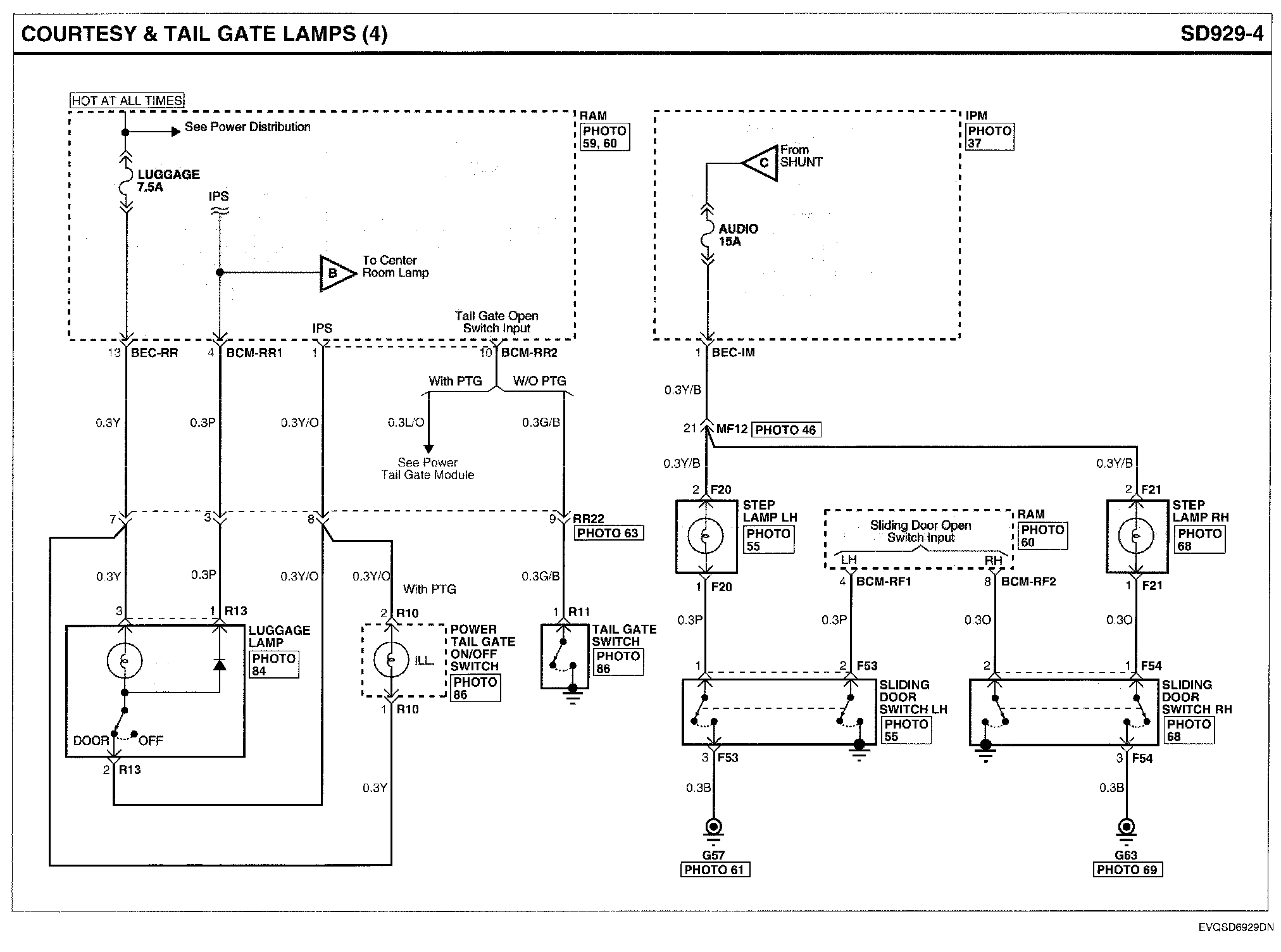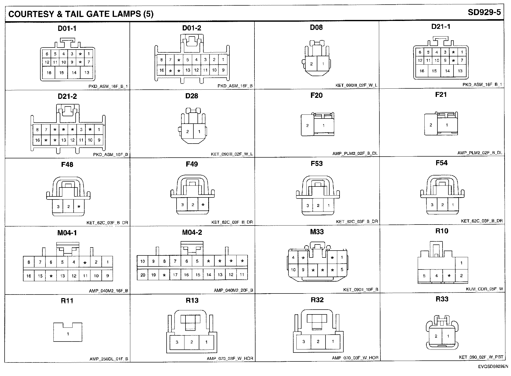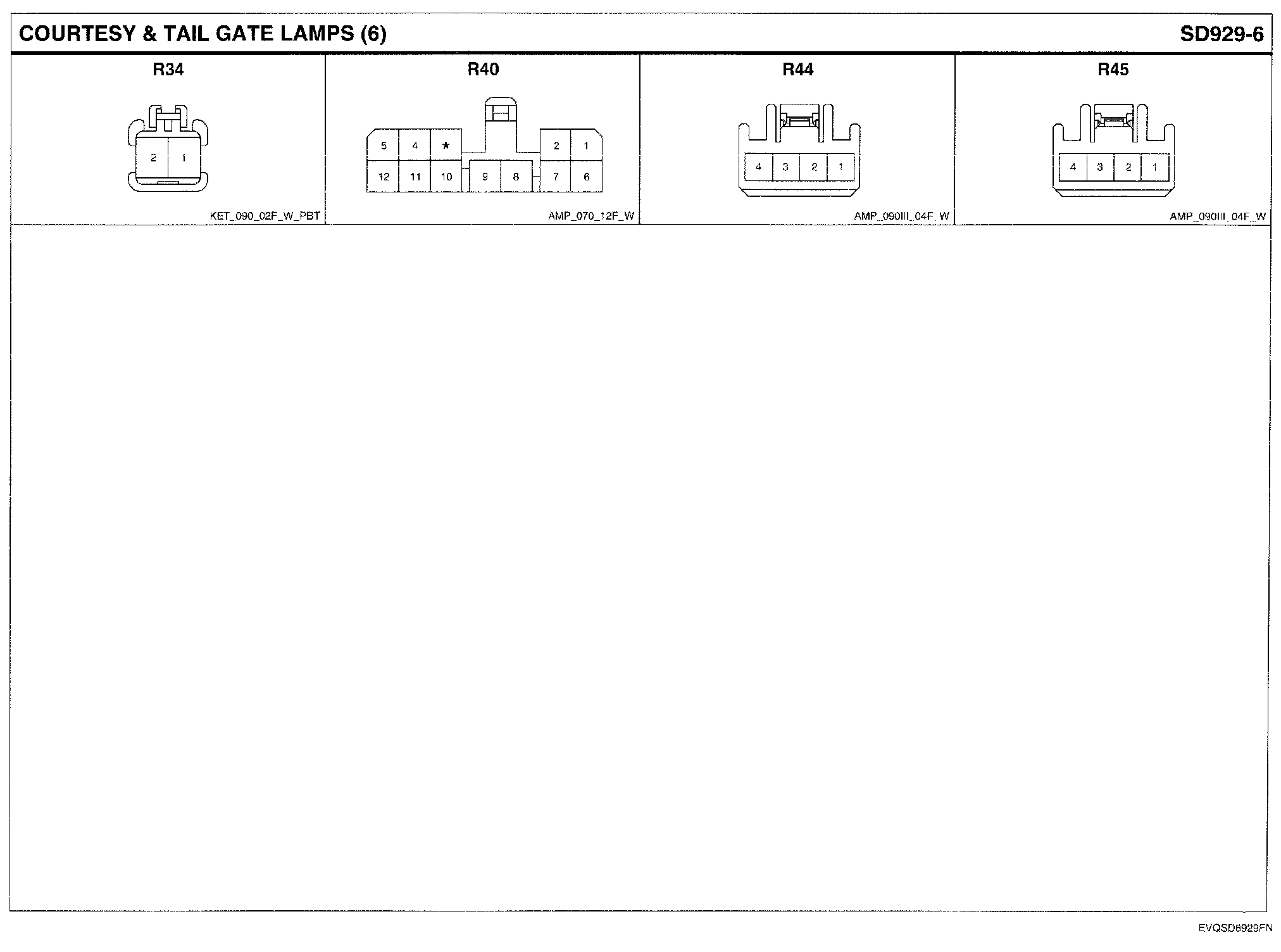 Courtesy & Tail Gate Lamps Connector Pin Outs: