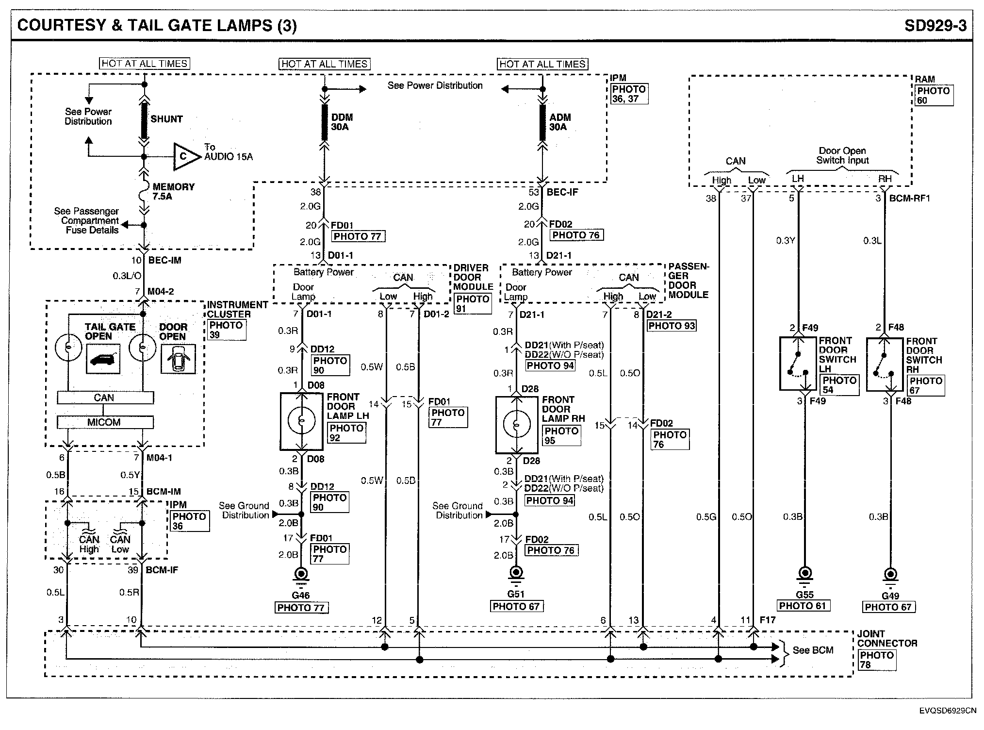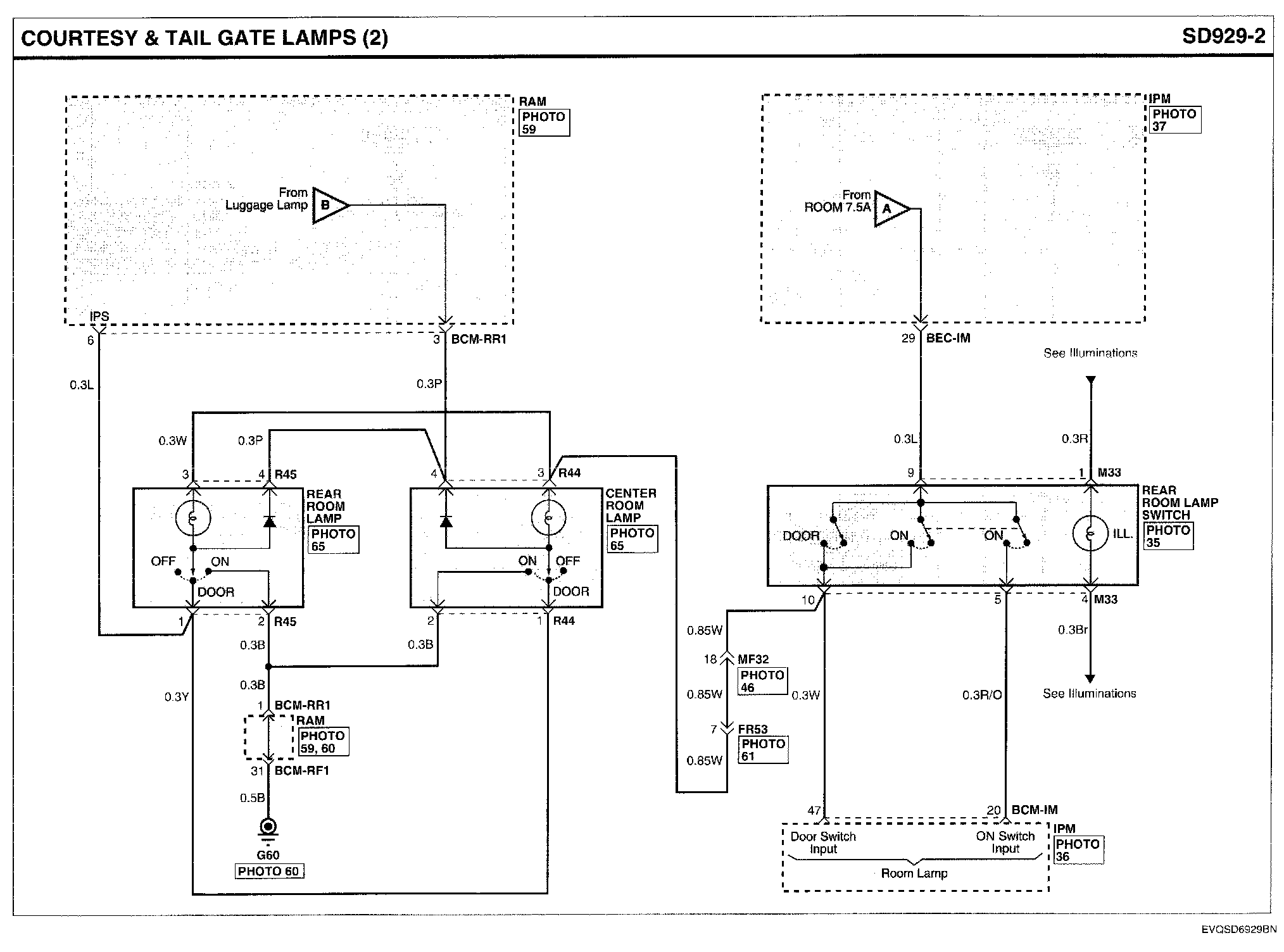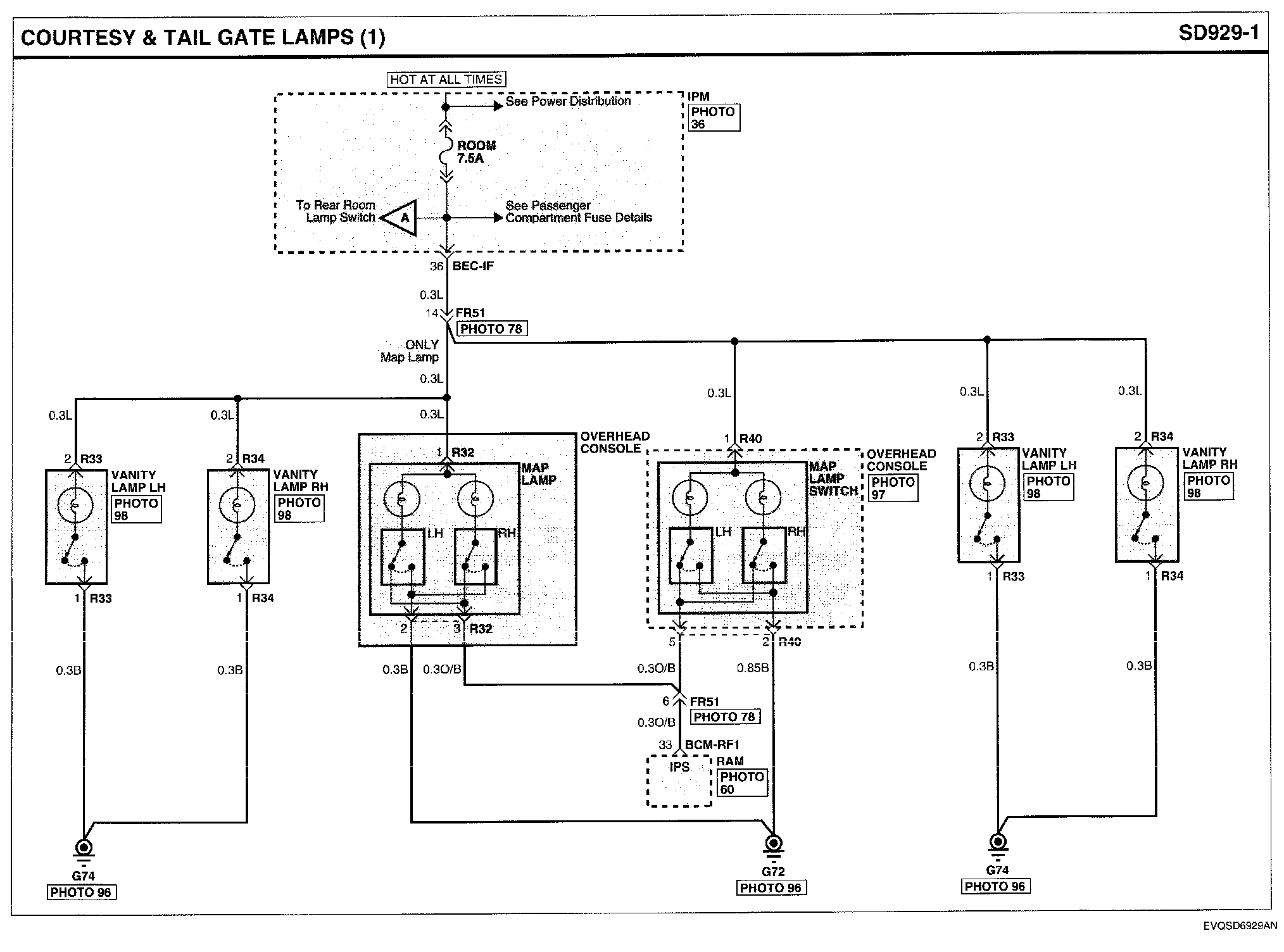 Courtesy & Tail Gate Lamps Connector Pin Outs: