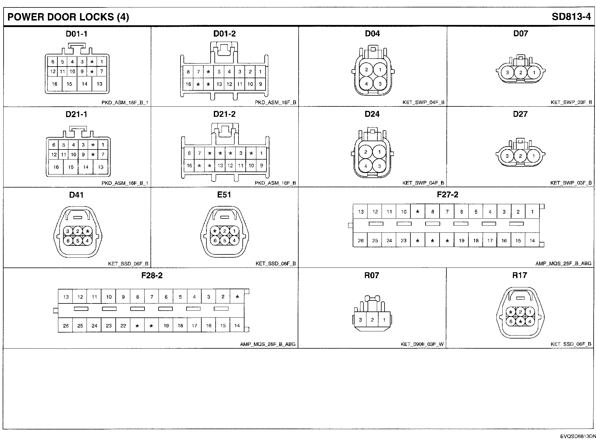 Power Door Locks Connector Pin Outs: