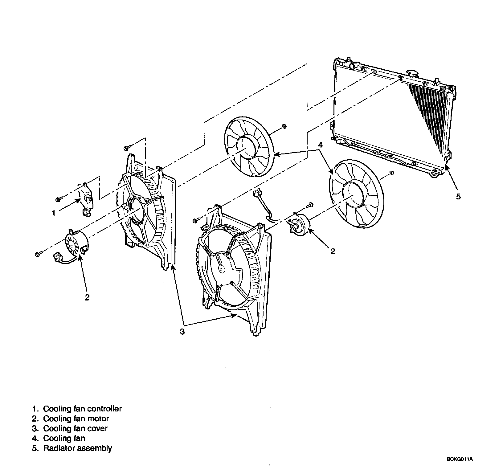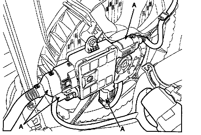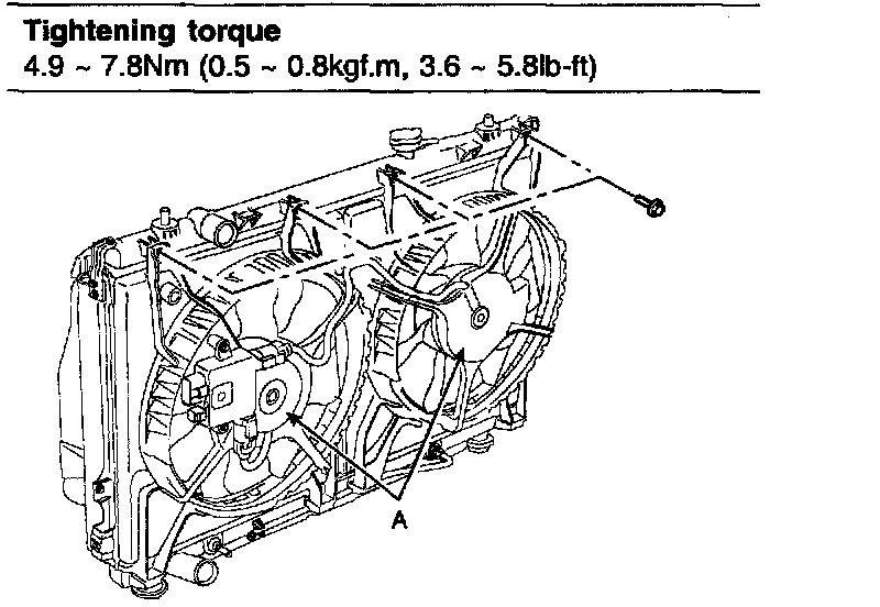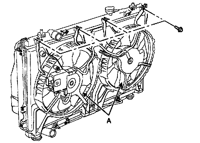 NOTE: The bottom side bolt (A) which can be seen after removing the under cover should be loosened for removal of the radiator support upper member assembly.