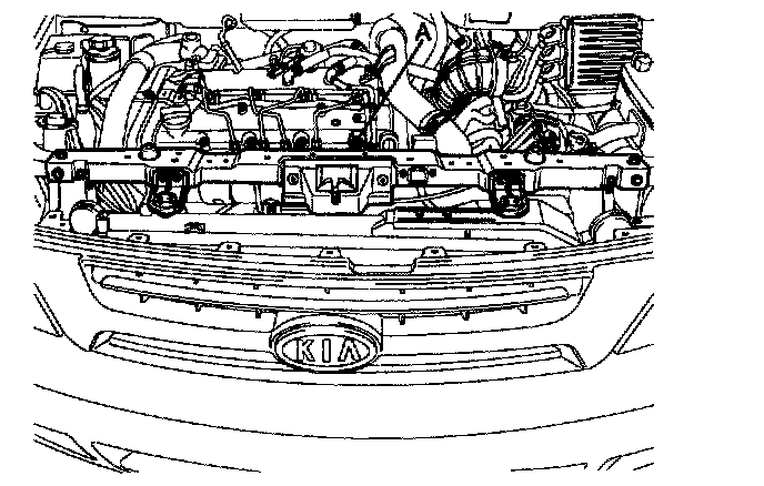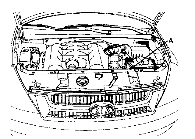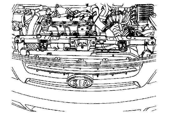 3. Remove the radiator support upper member assembly (A) for convenience sake.