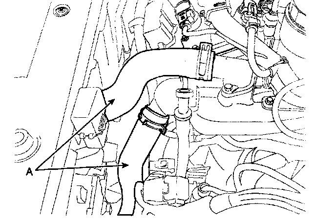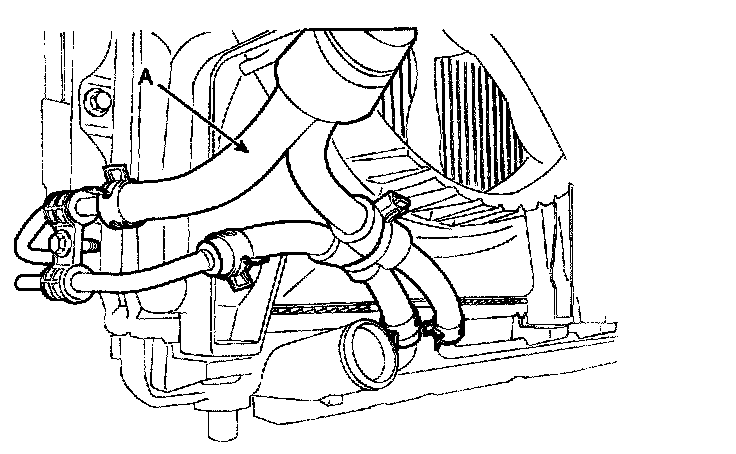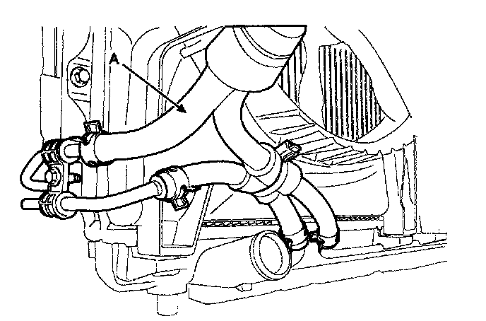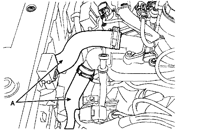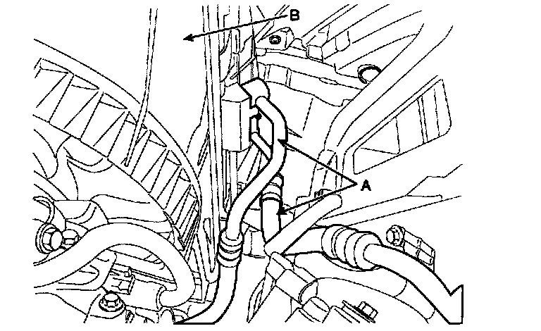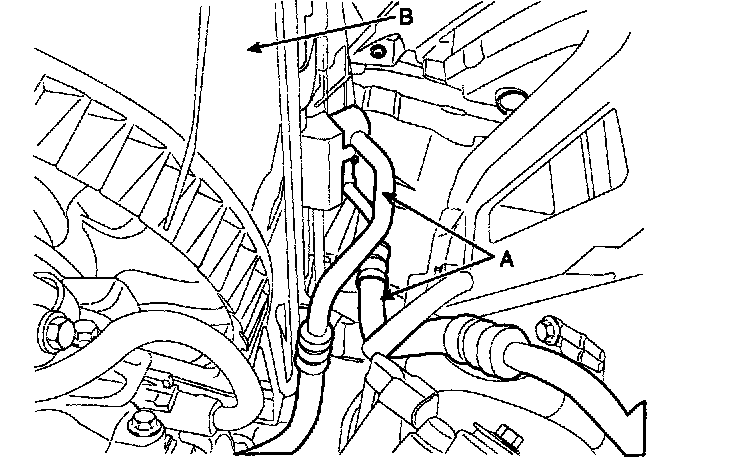 7. Disconnect the pressure lines (A) from the radiator assembly (B).
