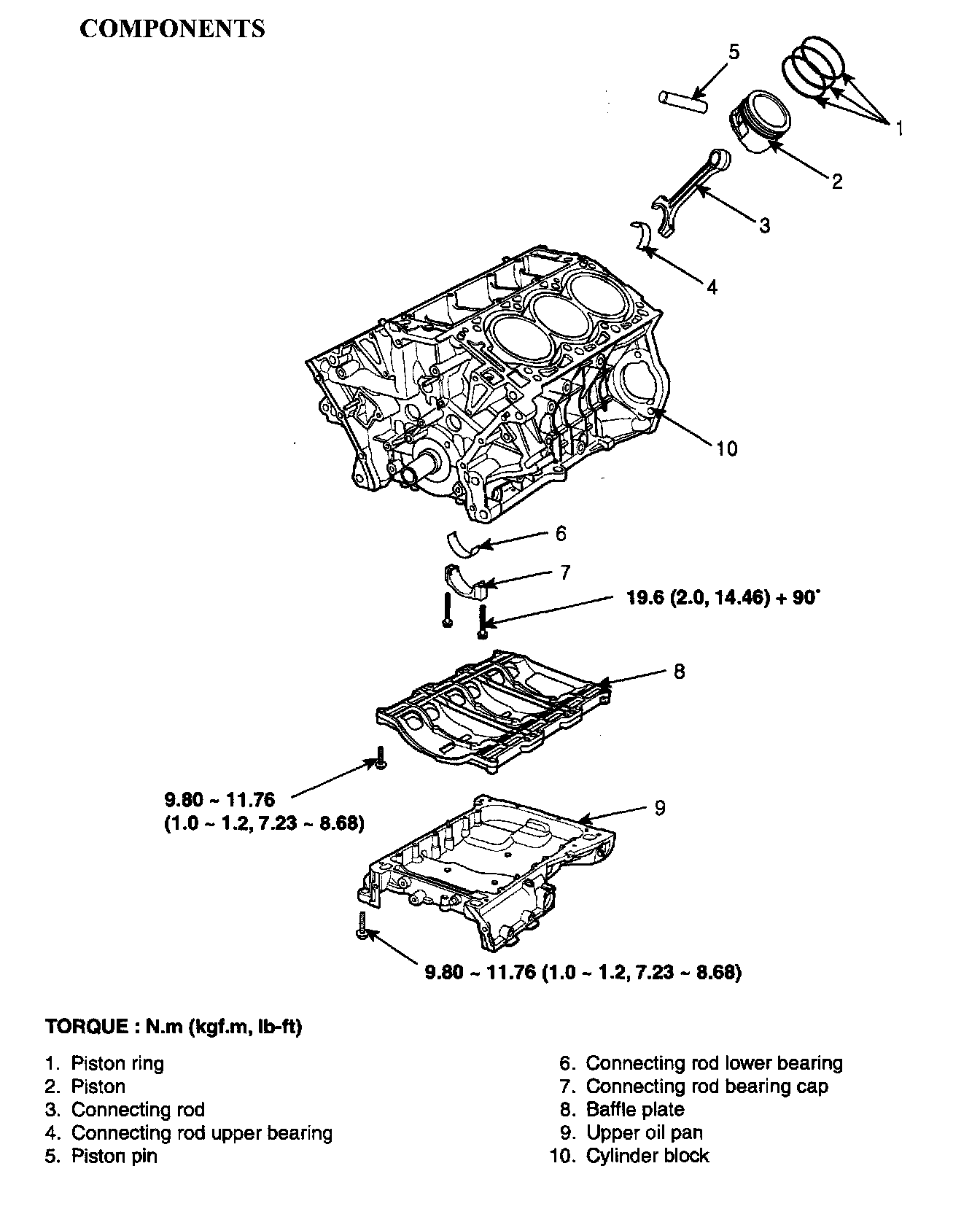 2) Push the piston, connecting rod assembly and upper bearing through the top of the cylinder block.