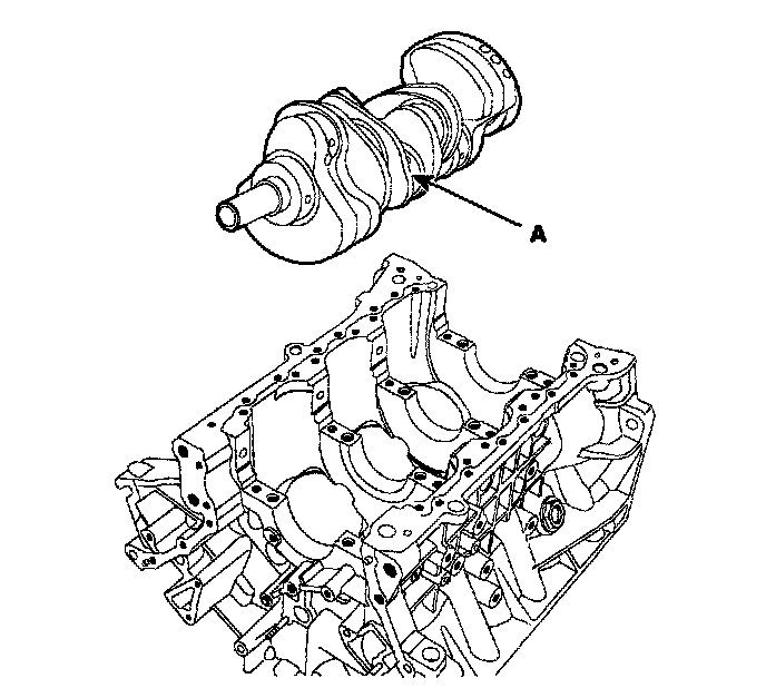 12. Lift the crankshaft (A) out of engine, being careful not to damage journals.