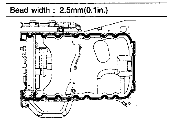 - When applying sealant gasket, sealant must not be protruded into the inside of oil pan.