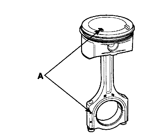 2) The piston front mark and the connecting rod front mark must face the timing chain side of the engine.