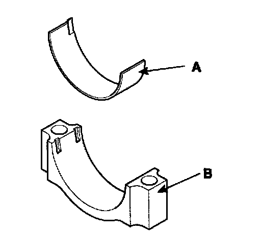2) Install the bearings (A) in the connecting rod and connecting rod cap (B).