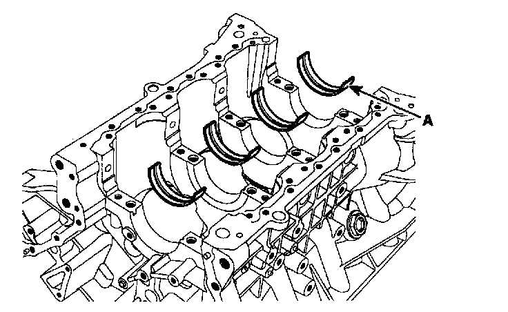 Install the 2 thrust bearings (A) under the No.3 journal position of the cylinder block with the oil grooves facing outward.