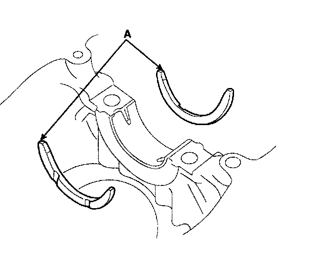 2) Align the bearing claw with the claw groove of the main bearing cap, and push in the 4 lower bearings (A).