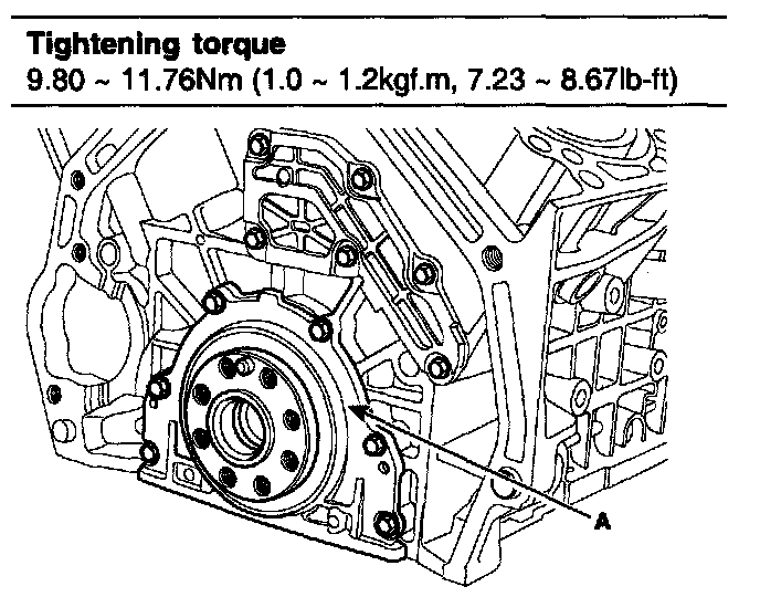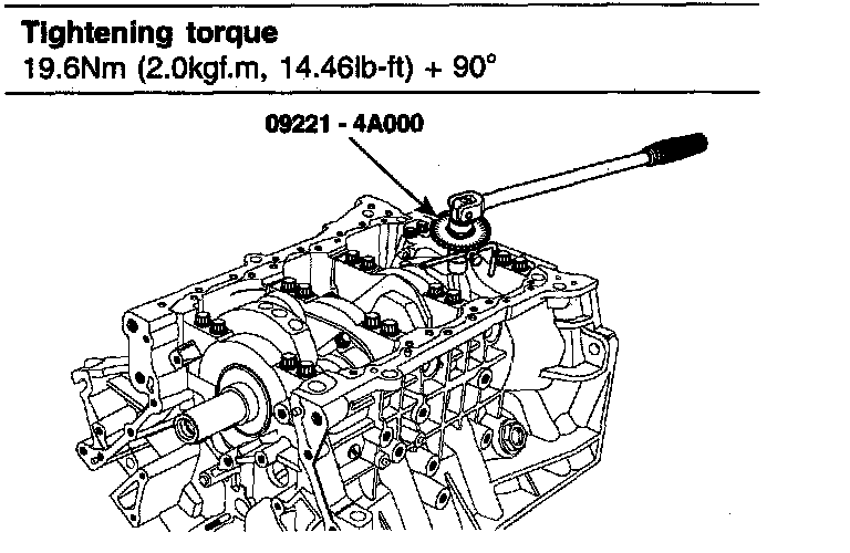 Tightening Torque: 19.6 Nm (2.0 kgf.m, 14.46 ft. lbs.) + 90°