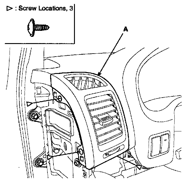 2. Loosen the mounting screws, then remove the air vent (A).