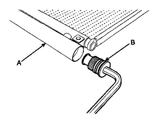 2. Remove the desiccant (A) from condenser using a long nose plier. Check for crumbled desiccant and clogged bottom cap filter.