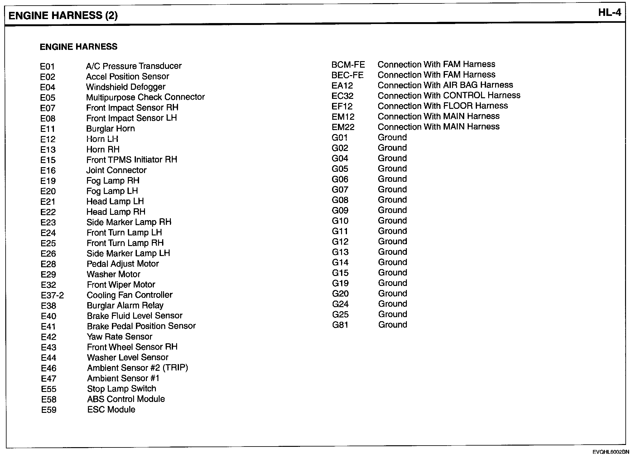 Engine Harness Index: