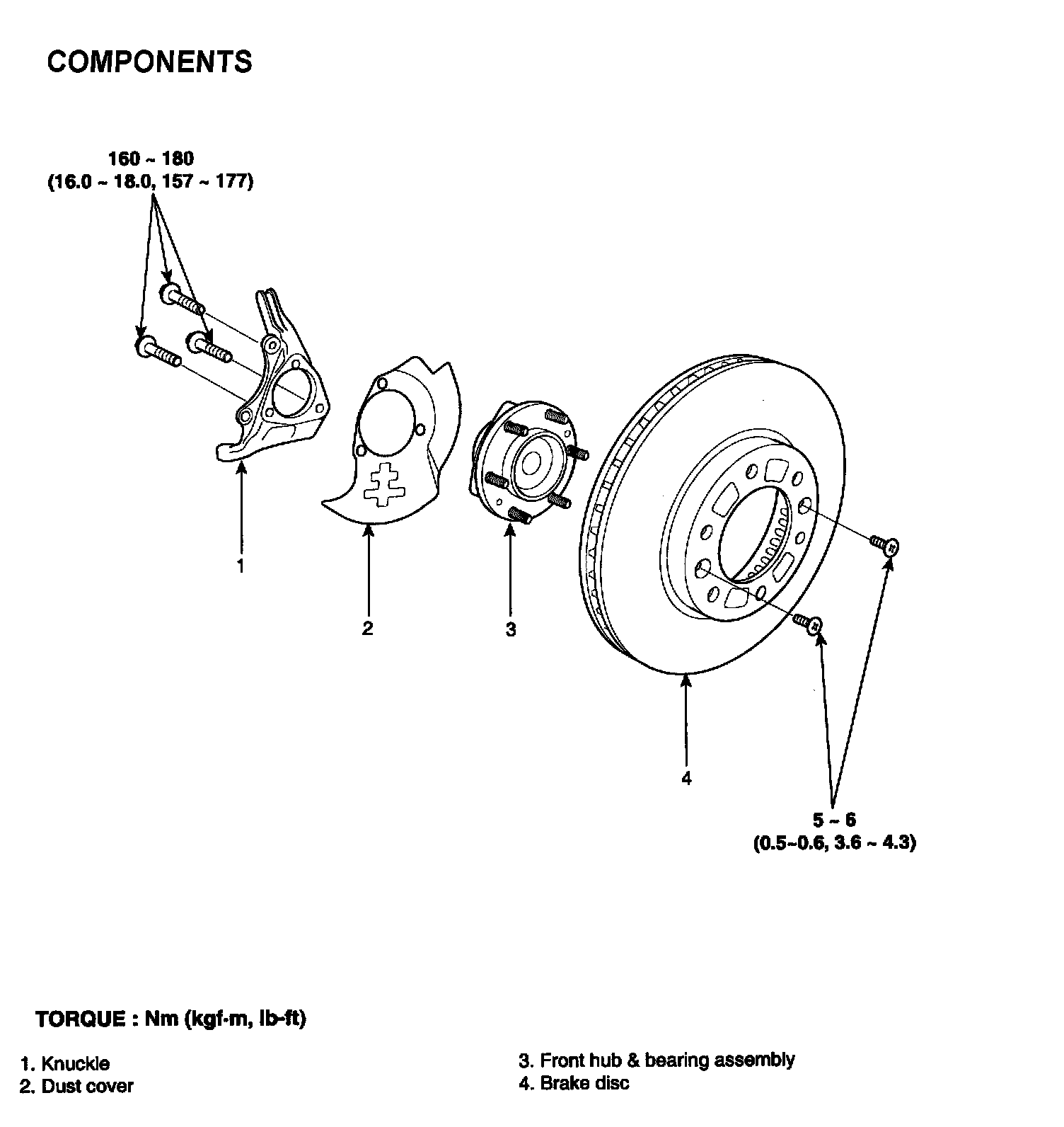 Tightening torque Nm (kgf-m, ft. lbs.): 160 - 180 (16.0 - 18.0, 116 - 130)