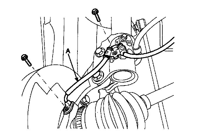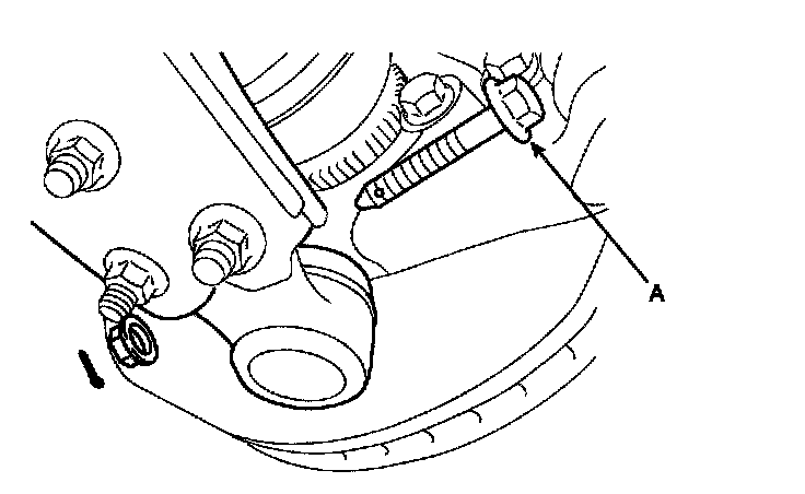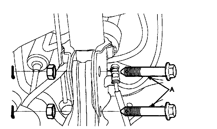 12. Remove the knuckle from the strut assembly by loosening the bolts (A).
