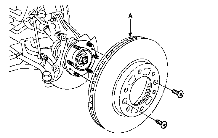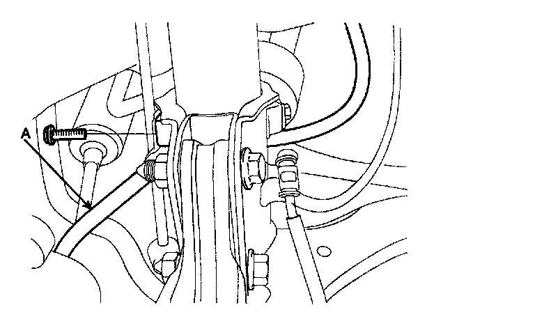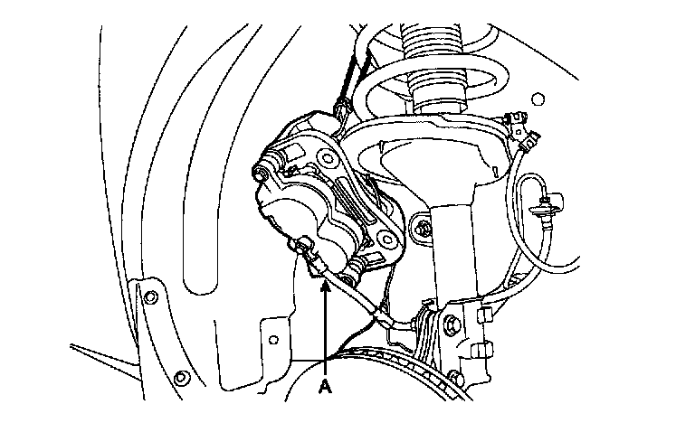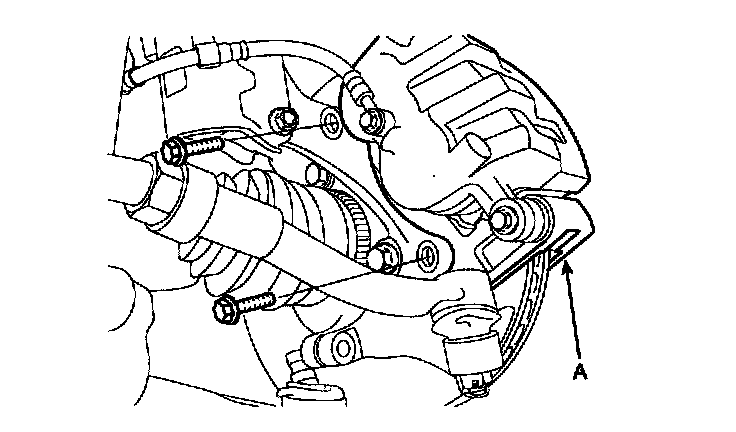 6. Remove the caliper assembly (A) from the knuckle and suspend it with wire.