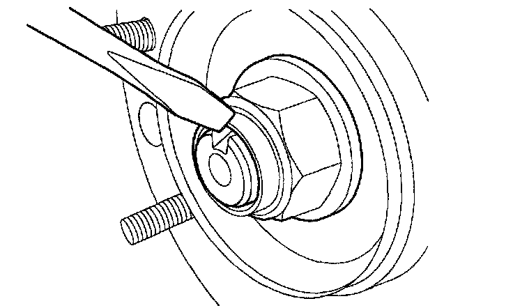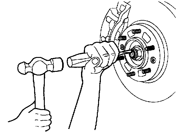 - After installation driveshaft lock nut, stake the lock nut using a chisel and hammer as shown in the illustration.