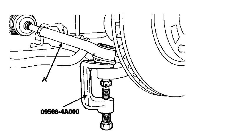8. Disconnect the tie rod end (A) from the knuckle using a SST (09568-4A000).