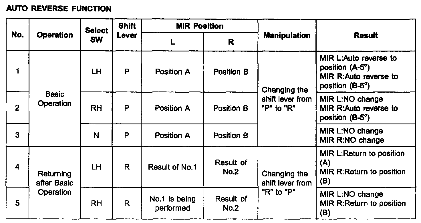 7. Out side mirror AUTO reverse operation