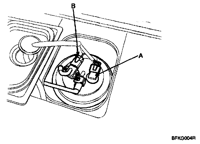 2. Disconnect the fuel pump connector (A) and the fuel tank pressure sensor connector (B).