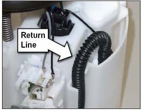 4. Attach the fuel return line to the fuel pump housing tightly without causing the return line to collapse.