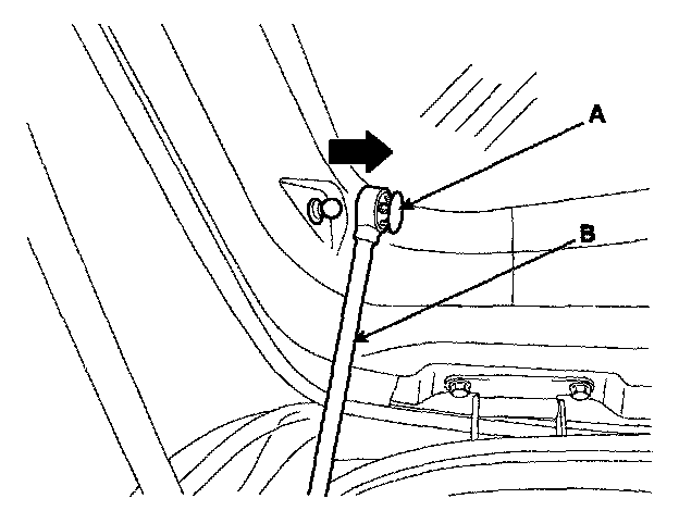 4. Use a small screw driver to loosen clip (A). But do not remove power tailgate push rod (B).