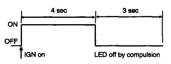 After ignition on, telltale lamp will turn on for 4 seconds and turn off for 3 seconds during the initialization phase and be turned off afterward until receipt of first valid suppression message from OCS system.