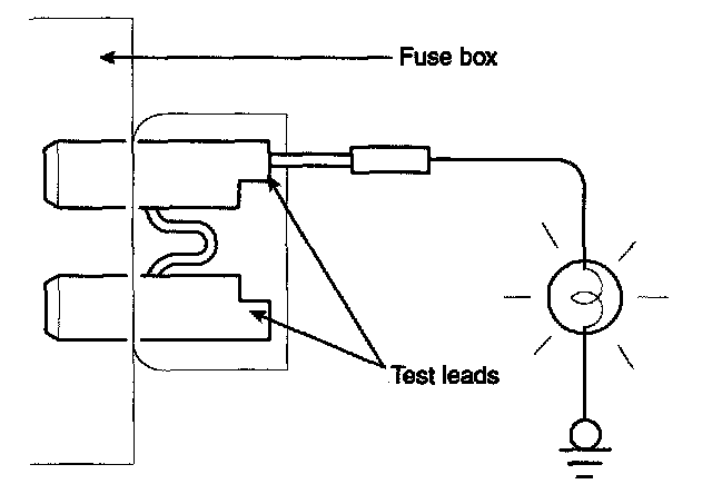 A blade type fuse test taps provided to allow checking the fuse itself without removing if from the fuse box. The fuse is good if the test lamp lights up when one lead is connected to the test taps (one at a time) and the other lead is grounded. (Turn the ignition switch so that the fuse circuit becomes operative)