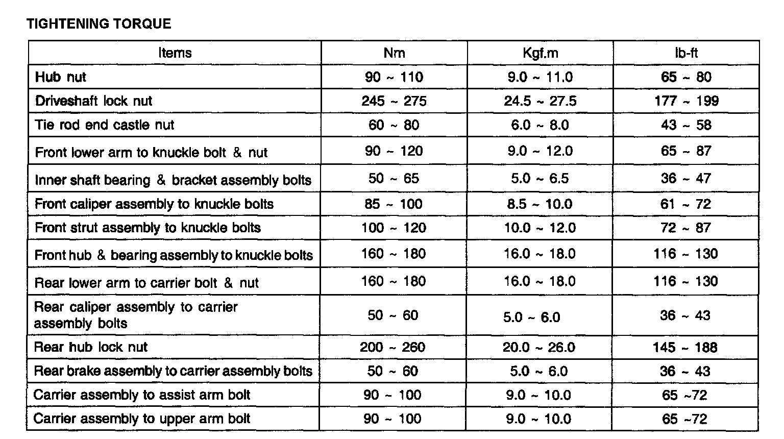 Tightening Torque