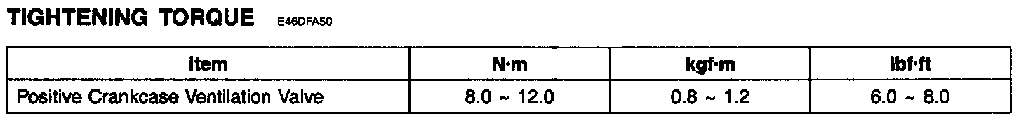Positive Crankcase Ventilation Valve