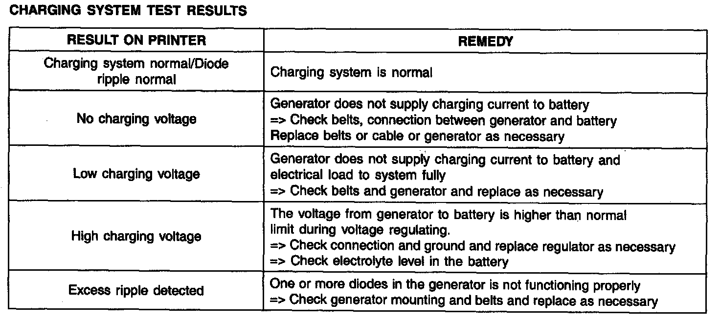 6. The MICRO 570 will detect the amount of ripple from the charging system to the battery. Excessive ripple usually means the stator is damaged or that one or more generator diodes have failed.